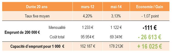 2013 a été l’année de la renégociation de crédit, mais malgré des taux toujours très bas, la demande a sensiblement diminué. « Or, les taux atteints actuellement offrent de très bonnes perspectives à ceux qui avaient souscrit leur crédit dans les années 2011 et 2012 notamment ; la plupart n’ayant pas pu profiter des taux très bas de 2013 car l’amortissement de leur prêt était encore insuffisant » explique Maël Bernier, porte-parole de [a[Meilleurtaux.com]a].
