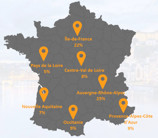 La région Auvergne-Rhône-Alpes est, en 2018, la première région de France en termes de montants collectés avec un total de 47 millions d’euros, soit une hausse de 161% par rapport à 2017 (18 millions d’euros collectés). Ces chiffres sont presque deux fois supérieurs à la moyenne nationale qui a connu une croissance de 83% entre 2017 et 2018. Le nombre de projets financés connaît lui aussi une forte progression passant de 49 en 2017 à 85 en 2018, soit une hausse de 73%. Le montant moyen par collecte était de 552 558€, soit une moyenne légèrement supérieure à celle nationale de 539 128€.