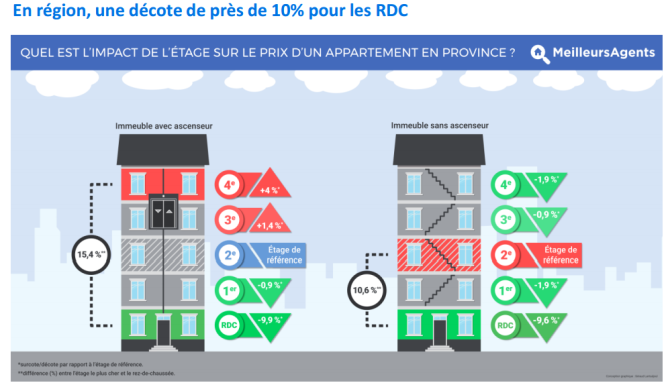 • 15%. C’est la différence de prix entre le RDC et le dernier étage dans un immeuble avec ascenseur en région.