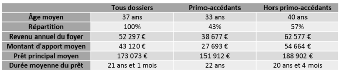 C’est le cas notamment des primo-accédants qui ne sont pour la plupart pas encore « bancarisés », mais également des beaux profils, des fonctionnaires ou des professions libérales. Les primo-accédants, malgré la hausse des prix, représentent ainsi actuellement 43 % des emprunteurs, contre 41 % en 2016… Globalement cette année, dans ce contexte de marchés tendus, tous profils confondus, les emprunteurs ont des revenus moyens en hausse (52 300 € contre 50 600 € en 2016), ils empruntent des montants plus élevés également (173 000 € contre 166 800 € en 2016) avec un léger allongement de la durée (21 ans et 1 mois contre 20 ans et 10 mois en 2016).